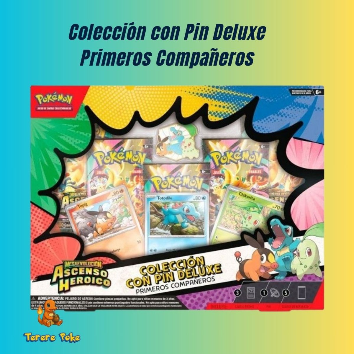 La Colección con Pin Deluxe Primeros Compañeros de Megaevolución-Ascenso Heroico de JCC Pokémon contiene:
